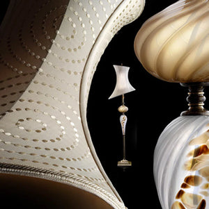 While our designs set us apart, we are known for the high quality of our materials and workmanship. Each lamp is made from solid brass and features vibrant glass that is hand blown by accomplished artisans. The distinctive shades are sewn from embroidered silks and other elegant fabrics. The nature of our materials and processes makes each lamp unique; no two will be exactly alike.